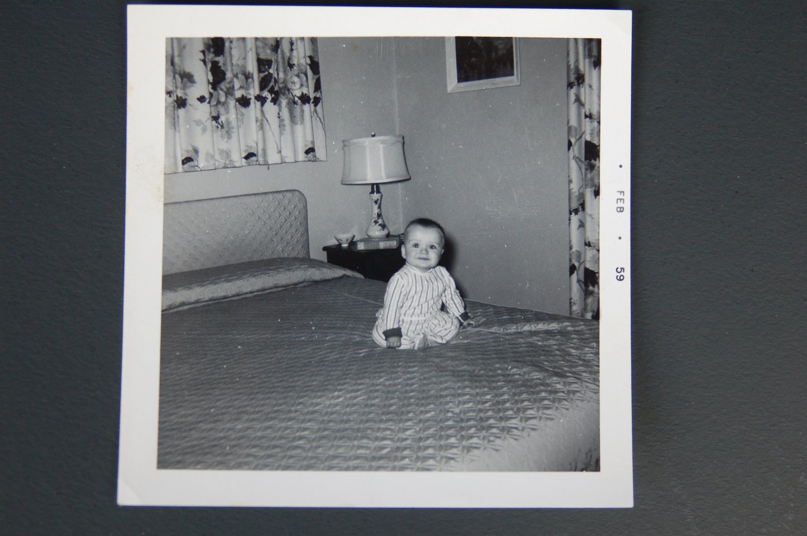 That’s me on the left, taken when I was 8 months old. Small kid, big bed. Nice curtains, huh?