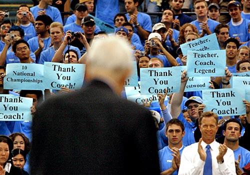 I had friend who was at that game. This morning I found a text on my phone from that same friend, indicating that after Scully’s announcement the fans at Dodger Stadium, nearly to a last man, and many of them in tears, rose to give Wooden a standing ovation.