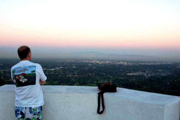 At the top of the hill above the Rose Bowl, you are surrounded on three sides by the City of Pasadena and its suburbs. As dusk settles in you can hear the low rush of the freeway below. This world we live is in constant motion, rushing from here to there, never ceasing. Standing above it all, I suddenly feel out of place – thinking that we had stepped out of that racing world below to a separate place, one of relative calm and reflection. Above it all, if only for a while.